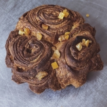 Biscuit moelleux à la noisette, caramel à la noisette, crème onctueuse au chocolat 58% et rocher noisette craquant.