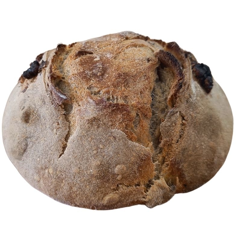 Farine, levain de blé, sel, eau, noix, noisette.